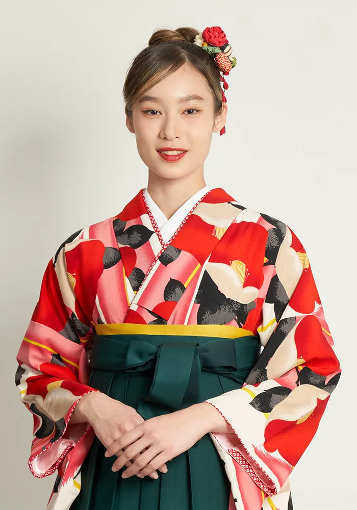 【着物】赤矢絣・椿
